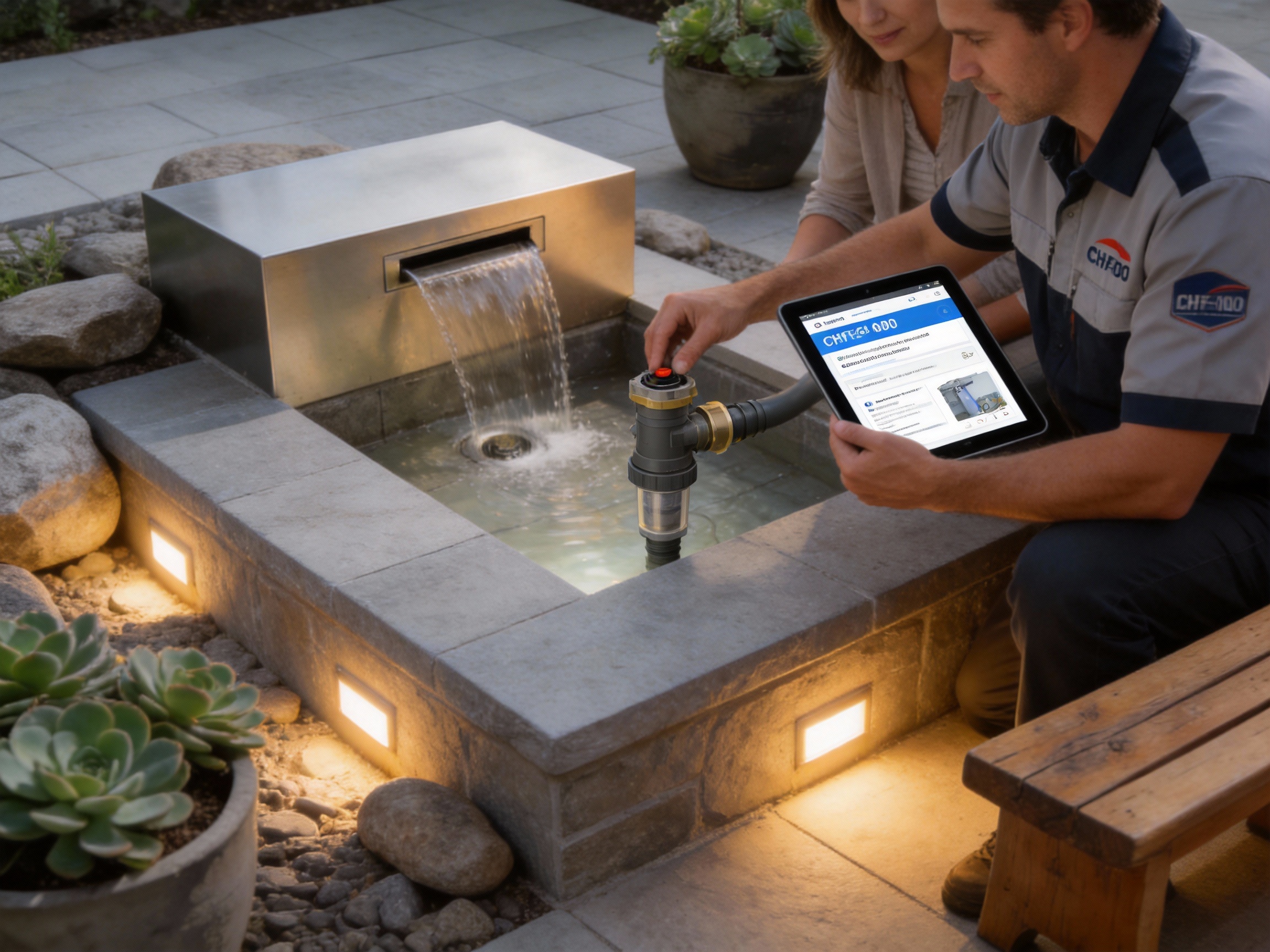 Maintenance is a major concern for many homeowners and commercial clients, and the CHF series addresses this with its low-maintenance design. The buried reservoir reduces debris accumulation, as leaves and dirt are less likely to enter the system compared to above-ground models. The drain valve allows for quick and easy draining—taking just 30 minutes for the CHF-800, compared to 2 hours for a competitor’s model of similar size. Cleaning the reservoir is also straightforward, as the smooth interior surfaces prevent algae growth, and the pre-assembled components make disassembly and reassembly quick.
