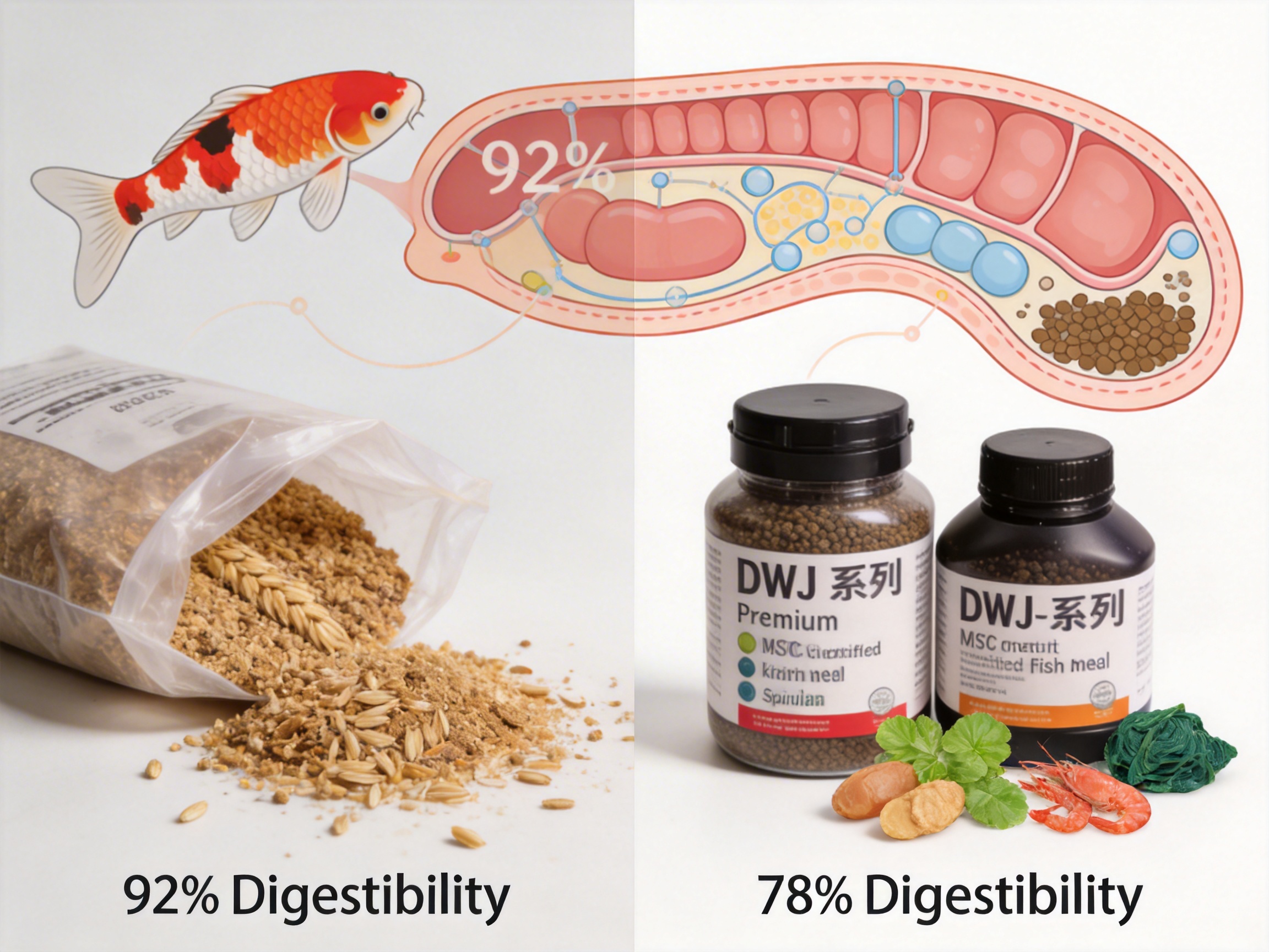All DWJ variants share premium ingredients: - Sustainable Protein Sources: MSC-certified fish meal, shrimp meal, and krill meal (complete amino acids). - Natural Color Enhancers: Astaxanthin (krill), spirulina, and marigold extract (no synthetic pigments). - Digestive Aids: Probiotics (Bacillus subtilis) and prebiotics (fructooligosaccharides) to support gut health. - Vitamin Blend: Vitamin C (100mg/kg), vitamin E (50mg/kg), and B-complex vitamins to boost immunity.